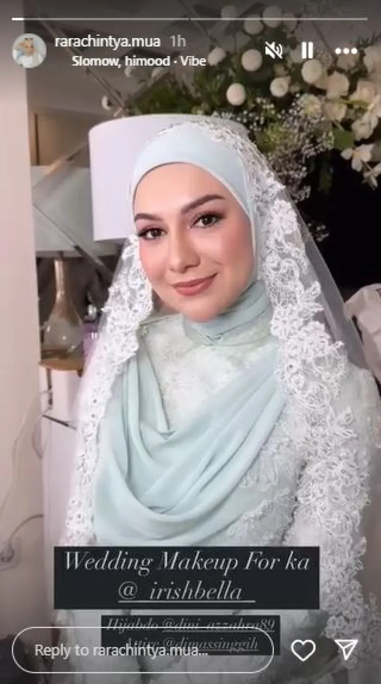 Makeup hasil tangan MUA Rara Chintya yang flawless tersebut memang berhasil membuat Irish Bella terlihat memukau.